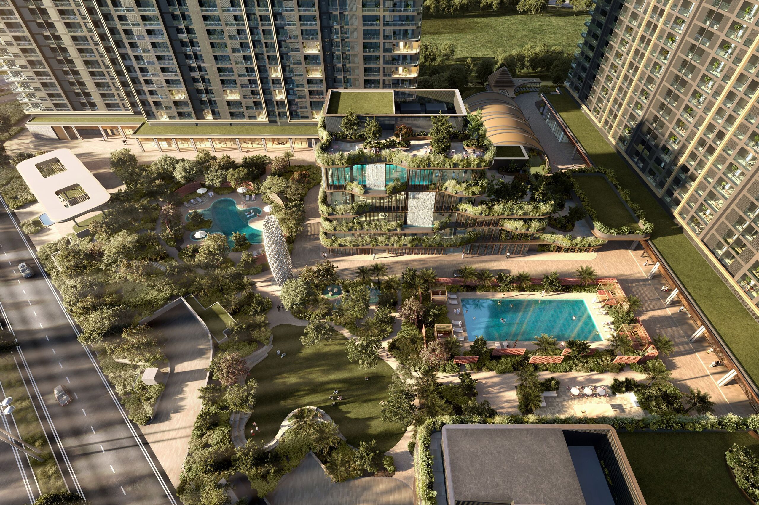 The landscape design is rooted in a strong biophilic narrative, focused on reconnecting residents with nature through planting, water and sensory experience. Scented walks, forest gardens, yoga and meditation spaces, play areas and outdoor sports facilities are carefully layered to support mental, physical and social wellbeing throughout the day and across seasons.